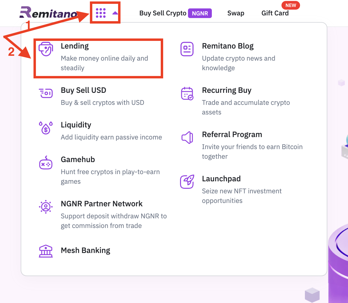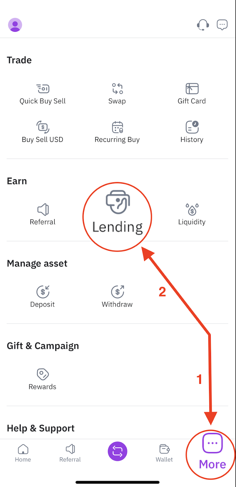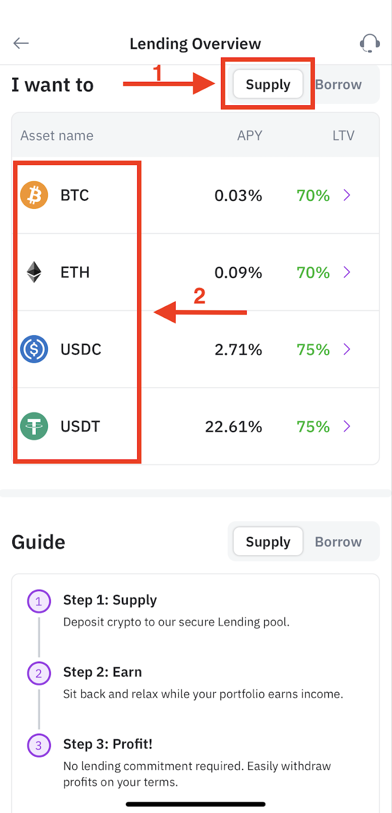 Step 1: Please choose “Lending” as below