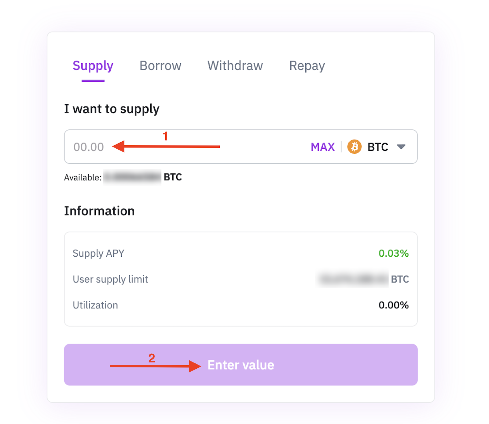 Step 3: Input the supply amount and press” Enter value”